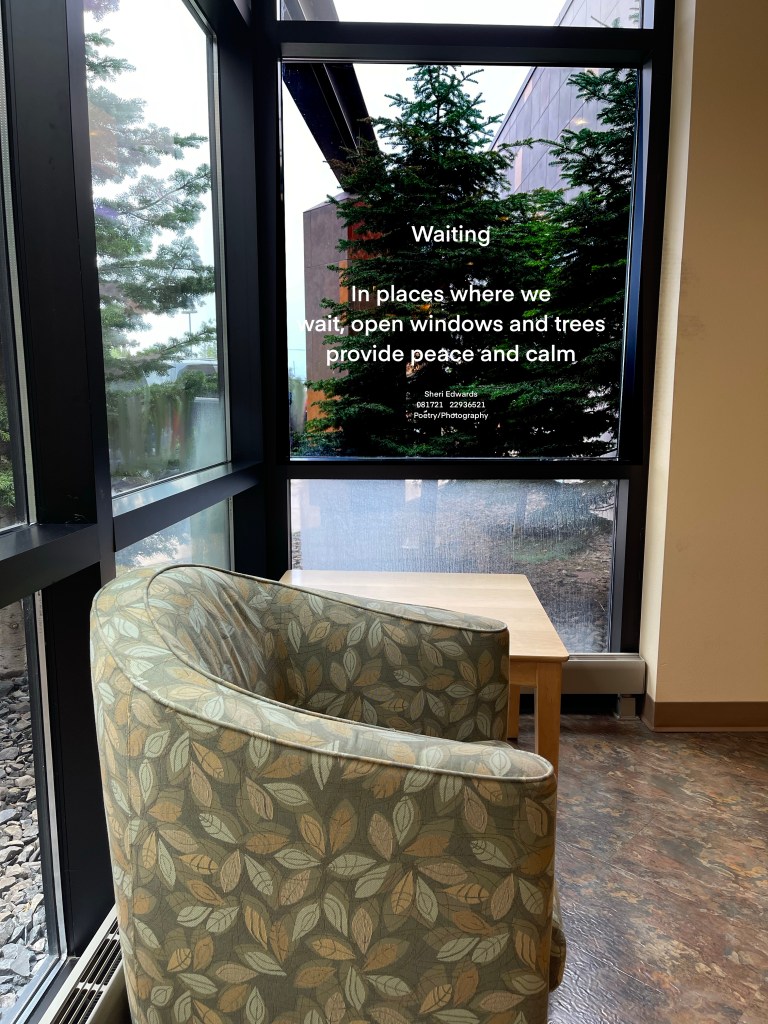 Every day, a photograph, a poem. I love that our local hospital was built with light and landscaping, with interior design colors and decor that reflects the coulee area of basalt and sage brush and trees. Helps keep people calm.