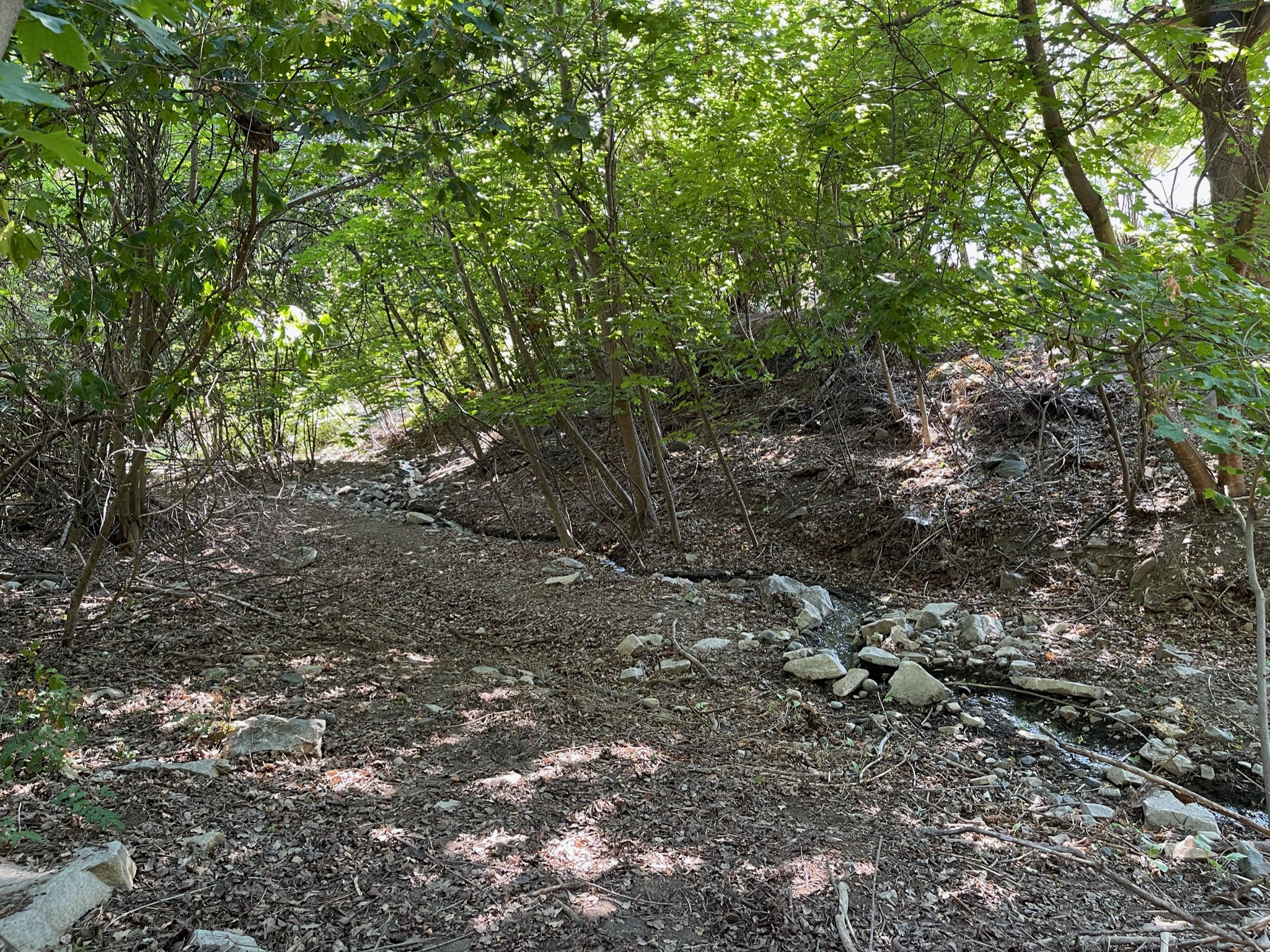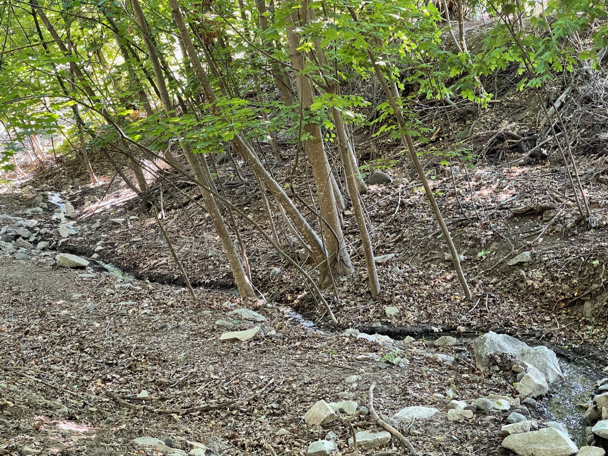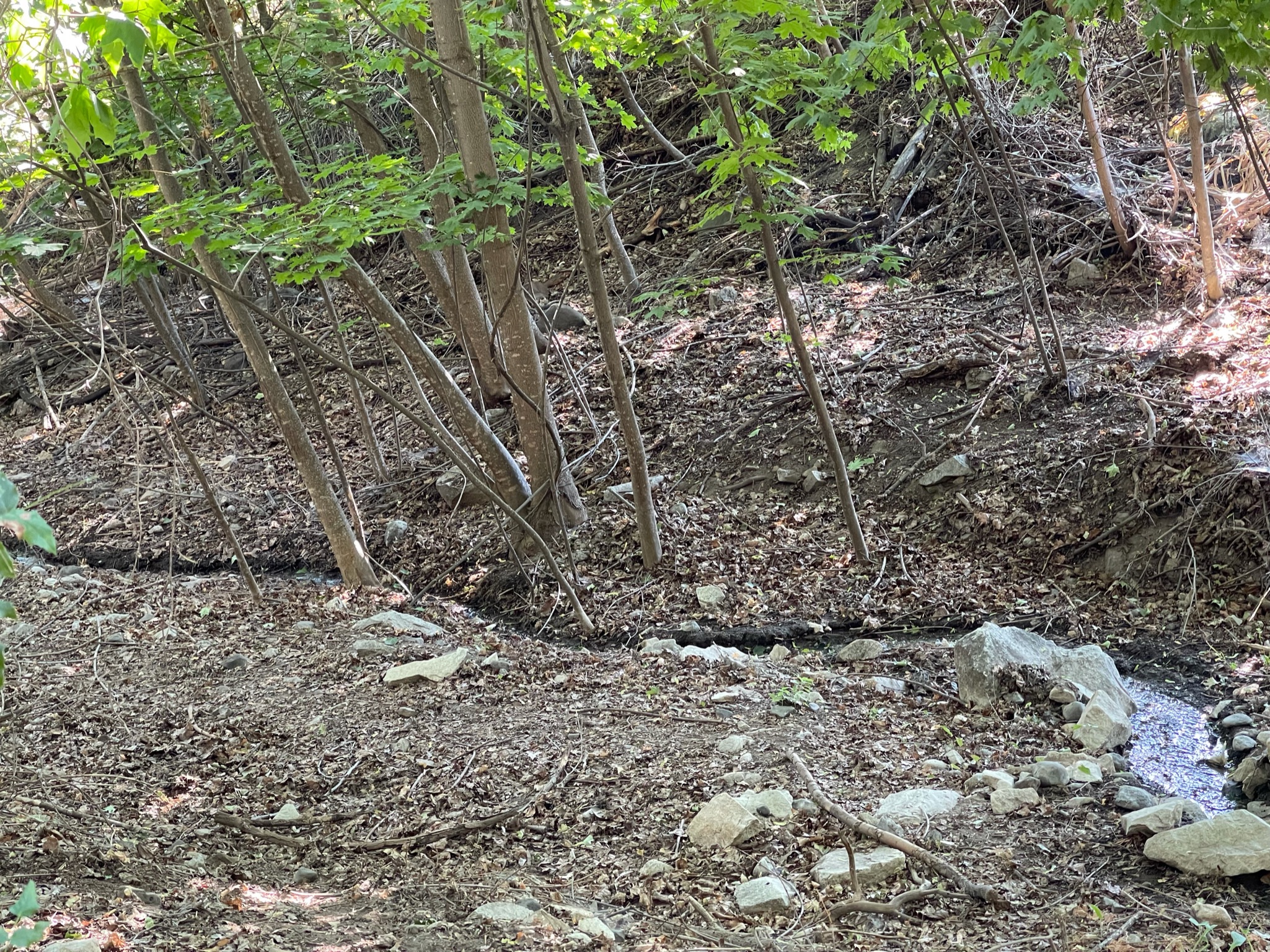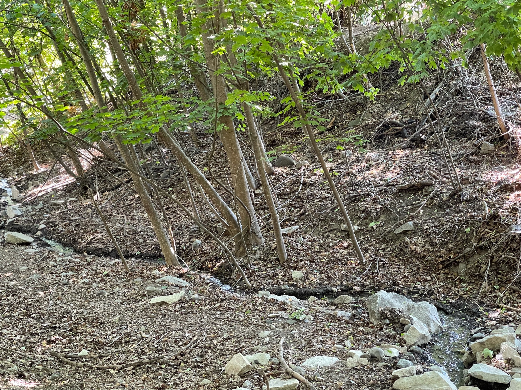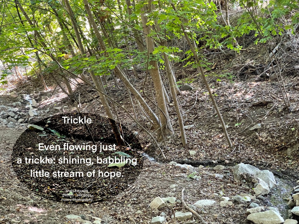Every day, a photograph, a poem. Sometimes Fiddle Creek this far down the hill is dry. We’re not sure if it just filters through the soil or someone blocks it, but eventually, the little brook returns, and when it does, we feel hope. It’s like life flowing through the town— a bit of nature that is life-giving in so many ways— watching and listening, and for animals, taking a sip. It’s refreshing and relieving to hear and see it on our daily walk.