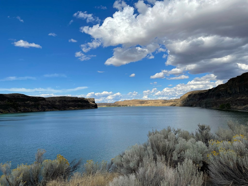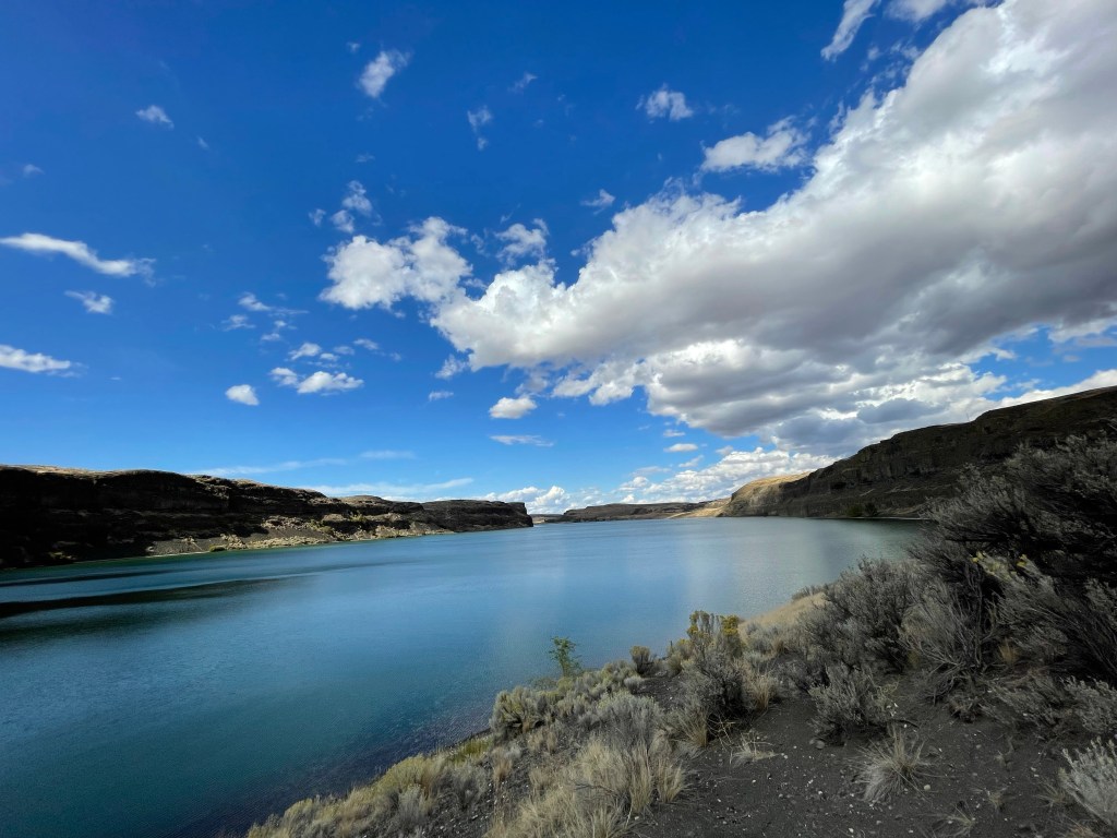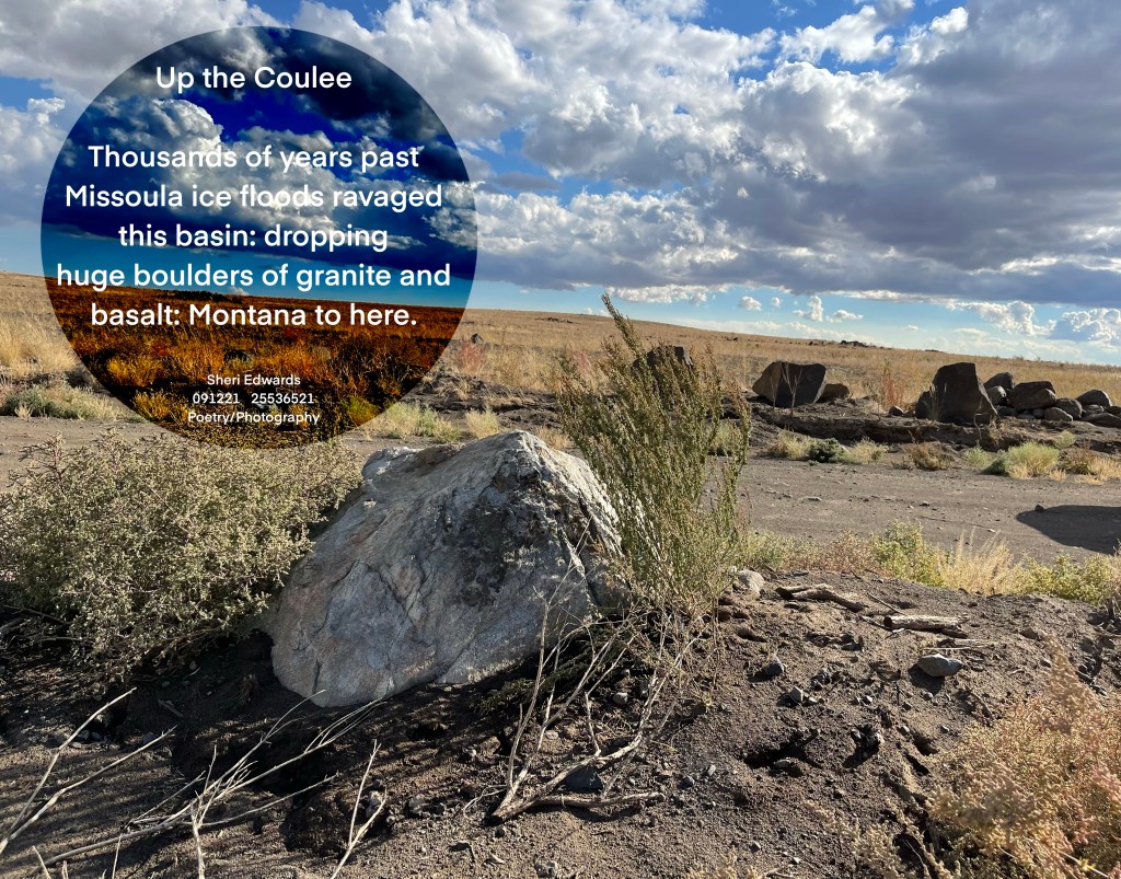 Enjoy our tour, beginning with breakfast at home and greeting the cat when we returned. Many of the pictures are of the same view, but at normal, 2.5zoom, and wide-angle from my iPhone. You’ll see the lake, haystack rocks, and huge boulders— the lake being created by and the rocks dropped by the great Missoula Floods thousands of years ago. [Missoula Floods explained by the Washington Department of Natural Resources]