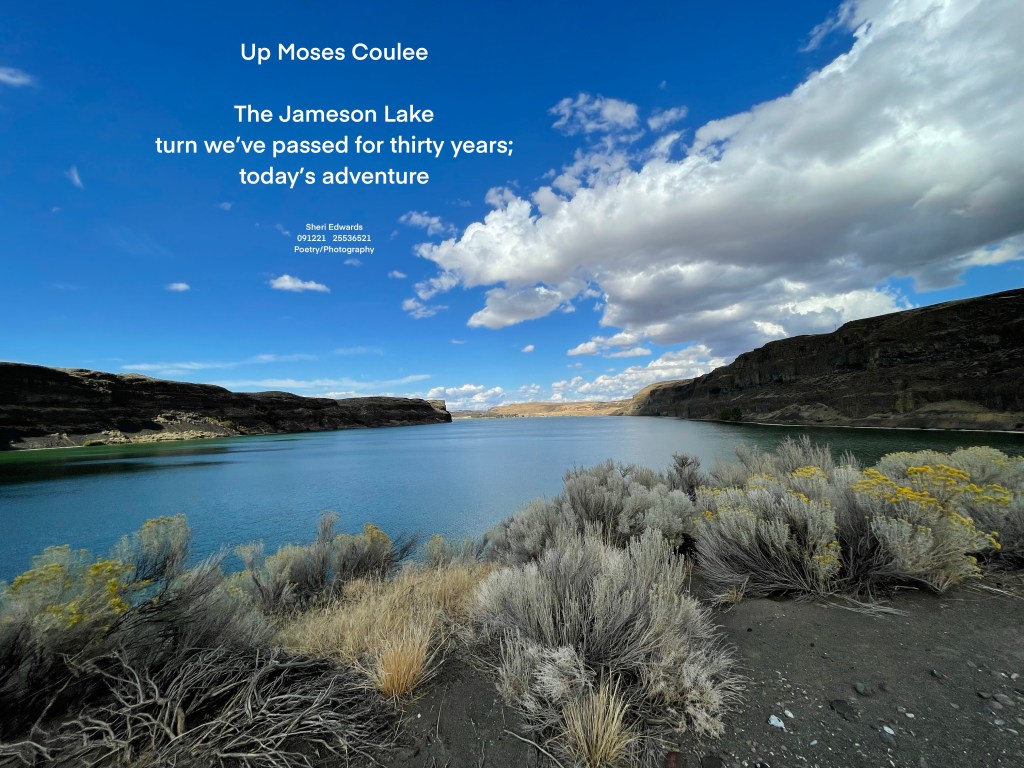 Every day, a photograph, a poem. Today my husband said, “Let’s go! We’re going to take the Jameson Lake Road up Moses Coulee!” We’ve passed that turn on Highway 2 through Moses Coulee for about thirty years, and never turned that way. Today, we did.