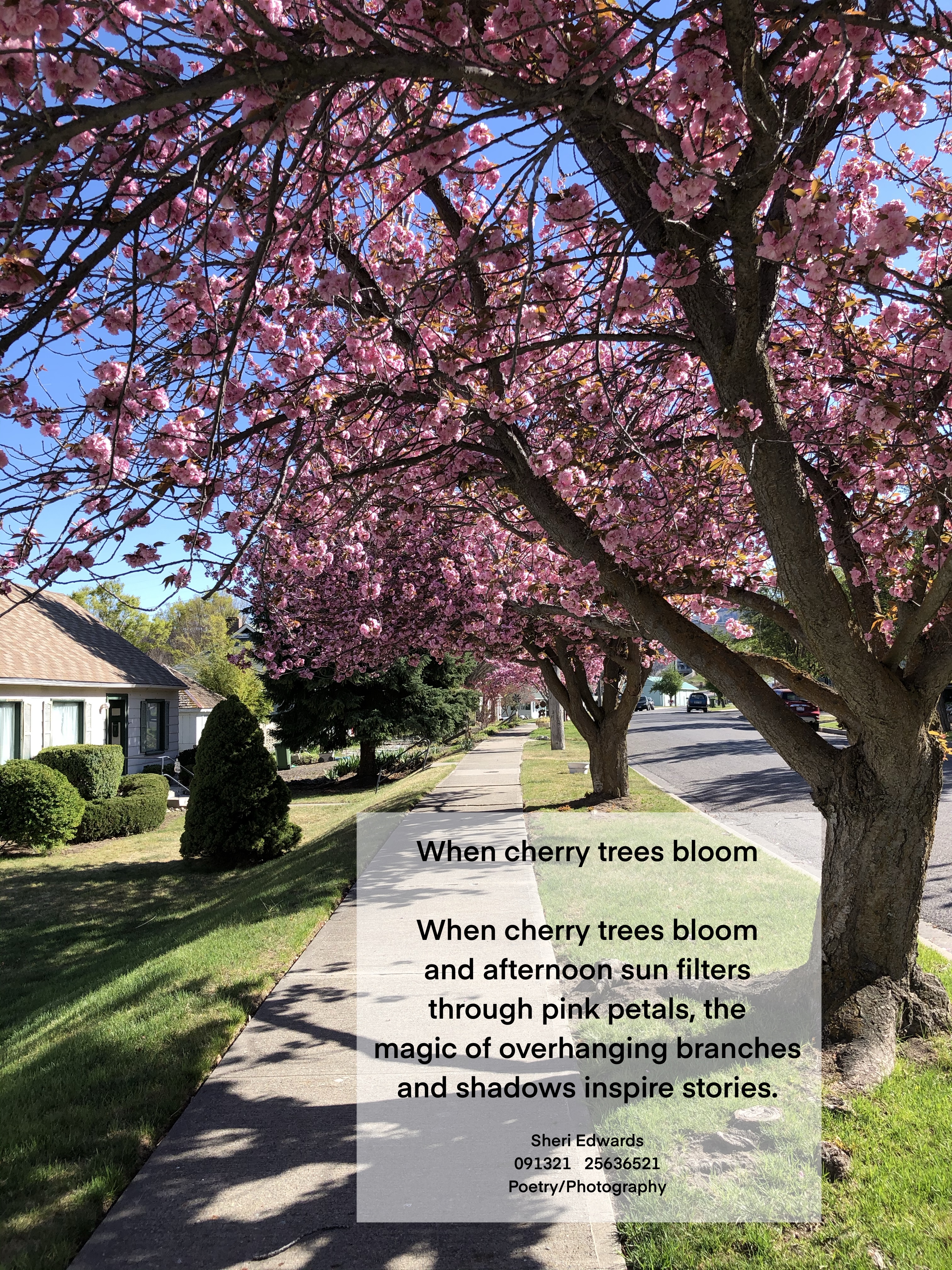 Every day, a photograph, a poem. In April, the cherry trees that line many of our streets bloom profusely, creating a magical world for us to enjoy on our walks.