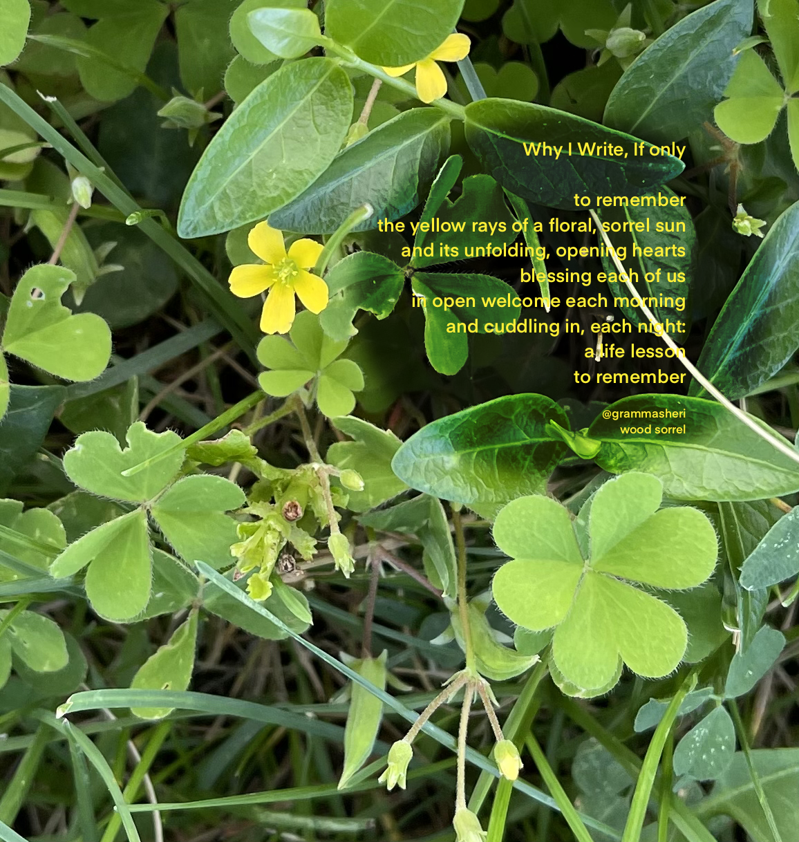 The two posts explain why I write and derived from the Daily Create [ @ds106dc #tdc3569 ] for the day, which was that same topic. And so, as the sun shone in the morning to awaken my wood sorrel, I wrote: