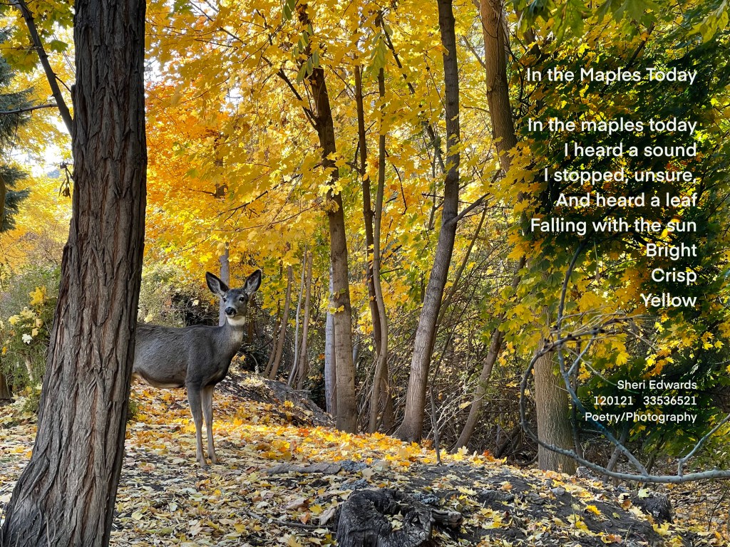 Every day, a photograph, a poem. Walking up through Cole Park over Fiddle Cree, we often find ourselves almost nose to nose with the neighborhood herd of mule deer who pause on alert to listen and watch us walk by. There’s something hopeful and soothing about that, as if the people of the world might do the same, accepting differences and letting them be, unafraid.