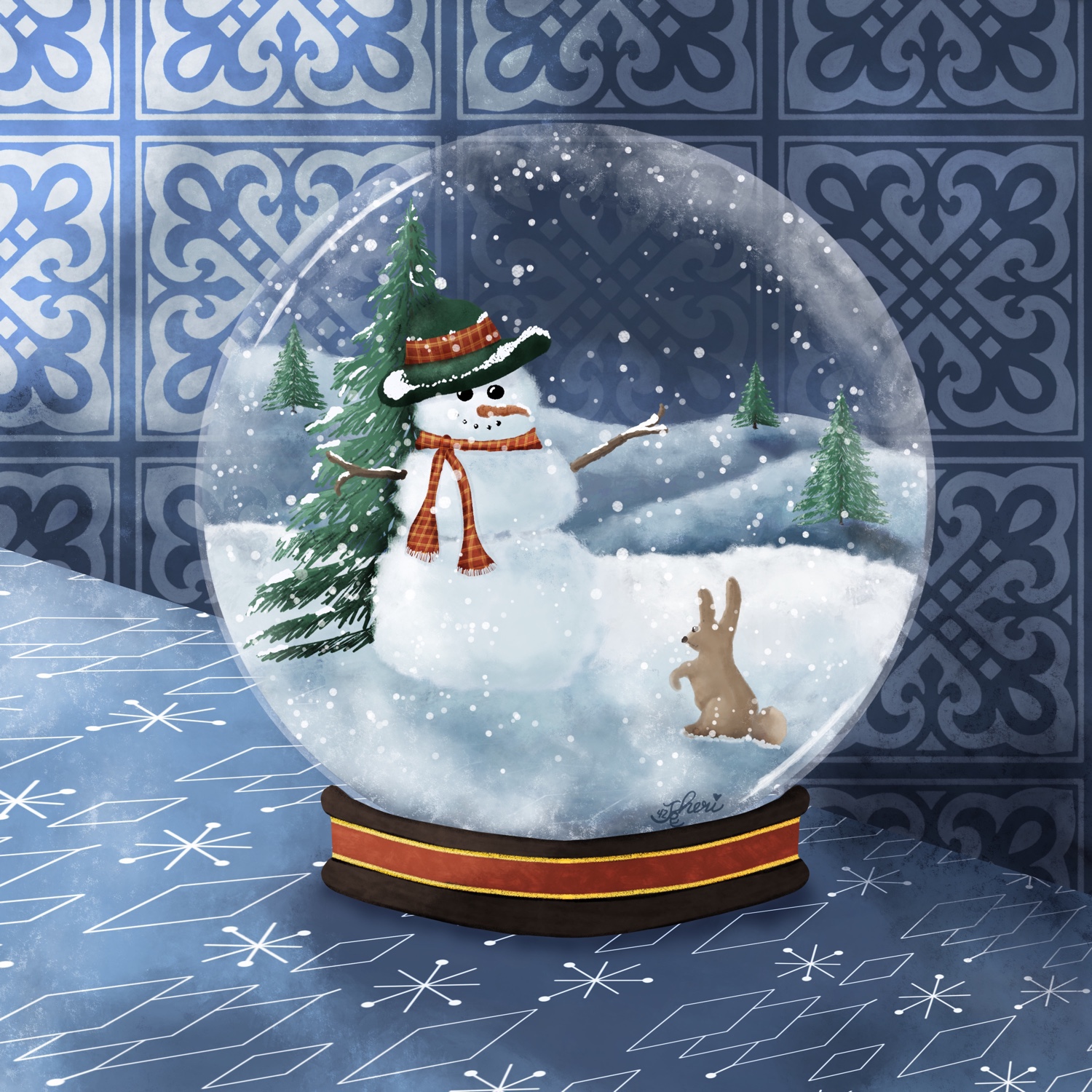 I have taken classes in the past on Skillshare from Jennifer Nichols for winter themed illustration, including snow globes. For those who would like to know how to illustrate this in Procreate on the iPad, Jennifer has an Instagram tutorial here: Snow Globes by Jennifer Nichols at Leila and Po.