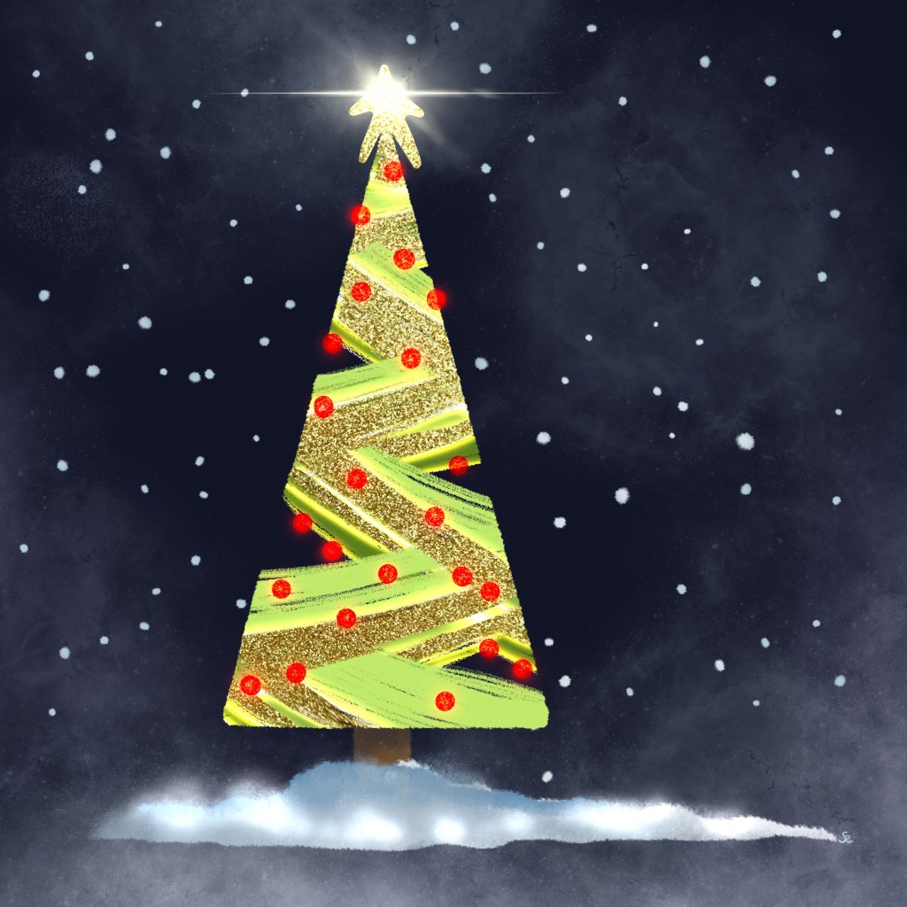 The prompt today is Christmas Tree Lights; Star Topper from #DoodlewashDecember2021 #WinterArtJN