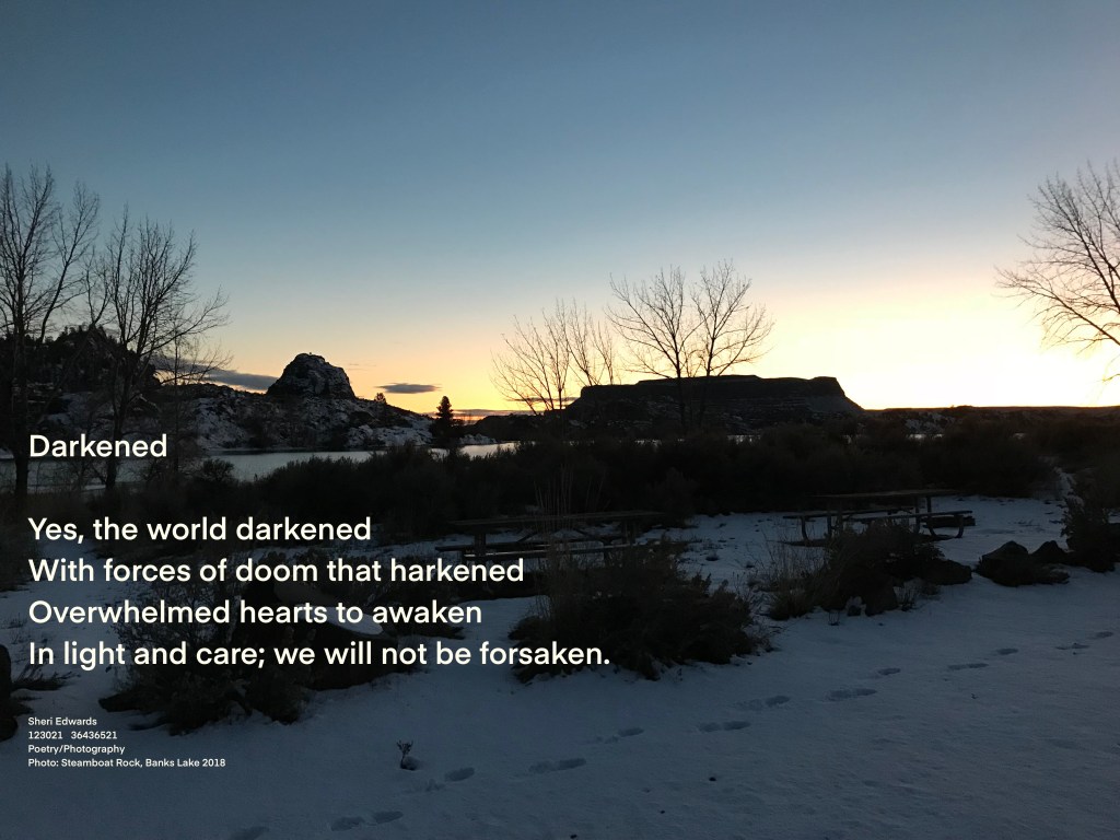 Every day, a photograph, a poem. Light. Twilight. Dark. Though some would darken the world with their anger, others hold onto the light by continuing the struggle for justice, for care, for community among the diverse. We will keep finding hope.