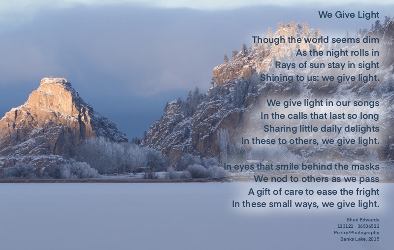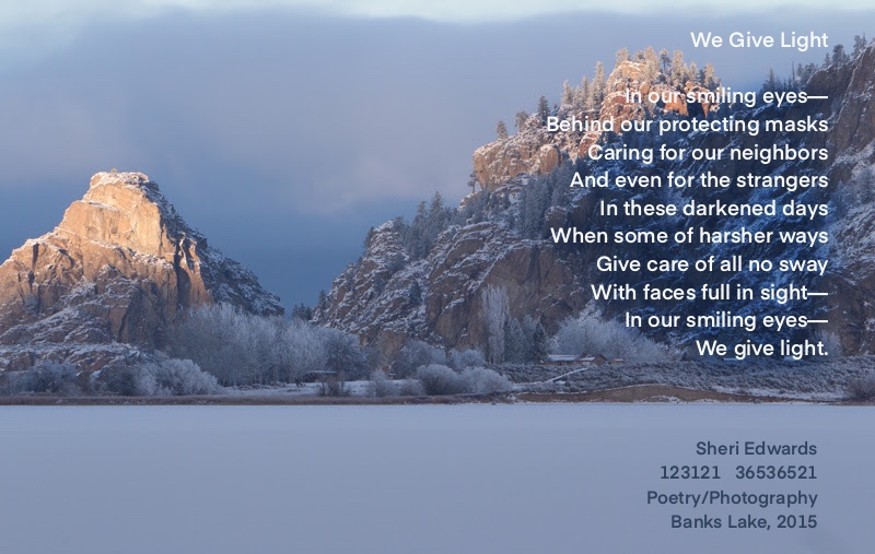 Two final poems for the year, placed on a sunset photo around Banks Lake in 2015.