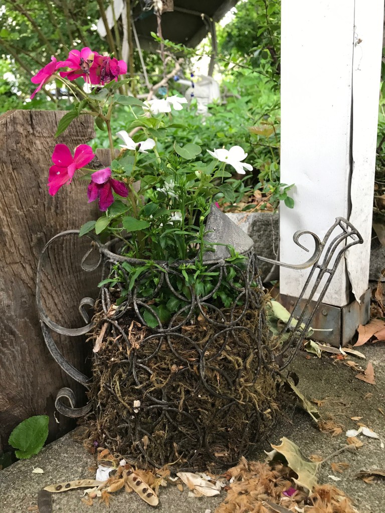 Today’s photography is from 2017– a favorite flower I planted in a wire pot placed on my back porch: impatiens. They are colorful, delightful flowers that bloom even in the shade, of which I have plenty under the canopy of a giant American plane tree, a sycamore.
