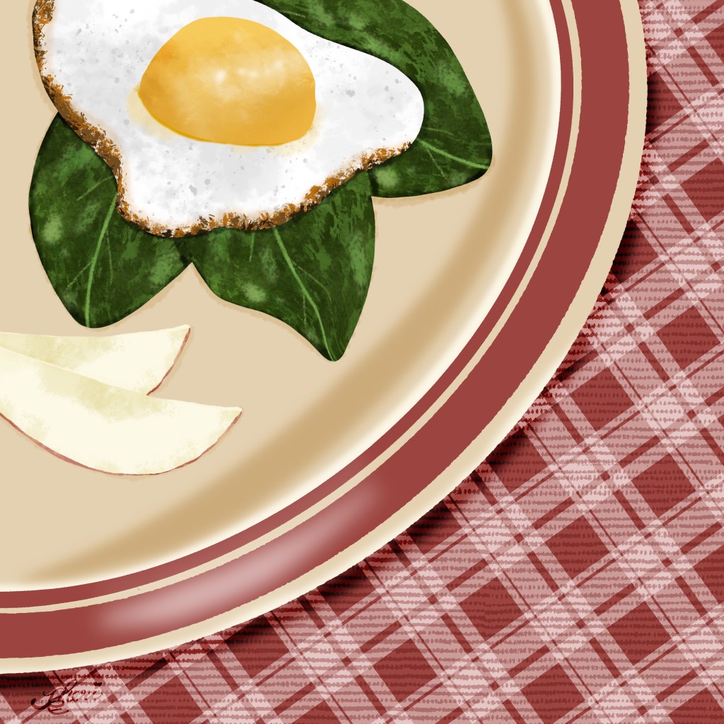 #eggs #spinach #apple #breakfast #breakfastfood is the prompt today from Lisa Bardot’s #makingarteveryday