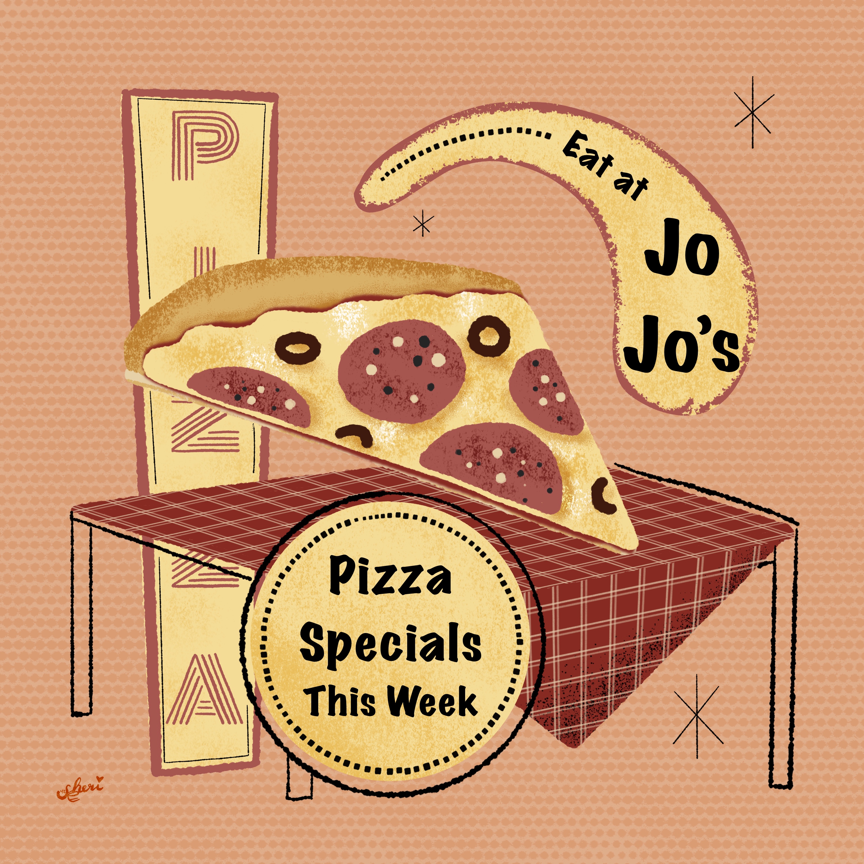 “Pizza” is the prompt today from Lisa Bardot’s #makingarteveryday and illustrated in a midcentury style