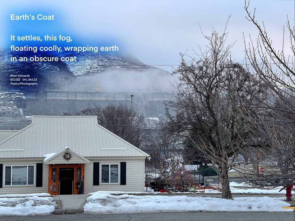 Every day, a photograph, a poem. This morning again, the sun is obscured by rolling fog, settling into its easy chair for a morning’s rest. It’s lovely and fanciful though somewhat dreary, a chance to consider all we do not know and have yet to discover.