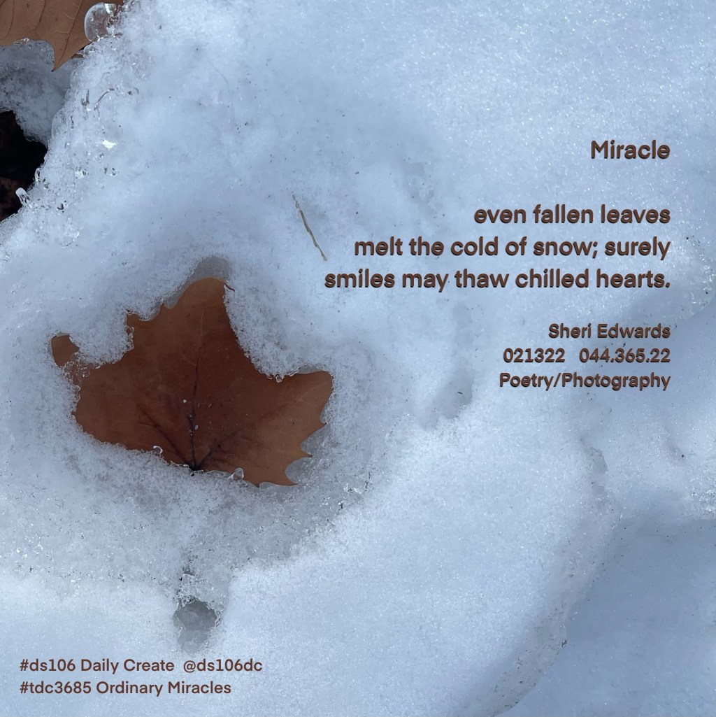 Every day, a photograph, a poem. Today’s #ds106 Daily Create @ds106dc #tdc3685 is Ordinary Miracles, and ordinary miracles mean bigger miracles can happen too. So, I’m hoping that, together, we can spread a few ordinary miracles to bring sides together again in discourse that offers support for us all living on this one planet, in the belief that we all belong here helping one another, instead of the opposite.
