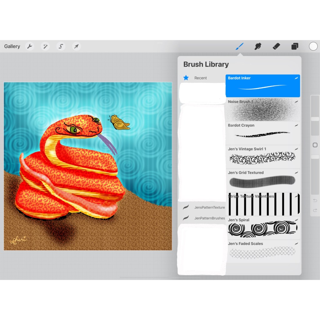 #clmooc #cldoodle22 #febdoodle #snake #makingarteveryday #butterfly #bardotbrush @bardotbrush #warmup4art