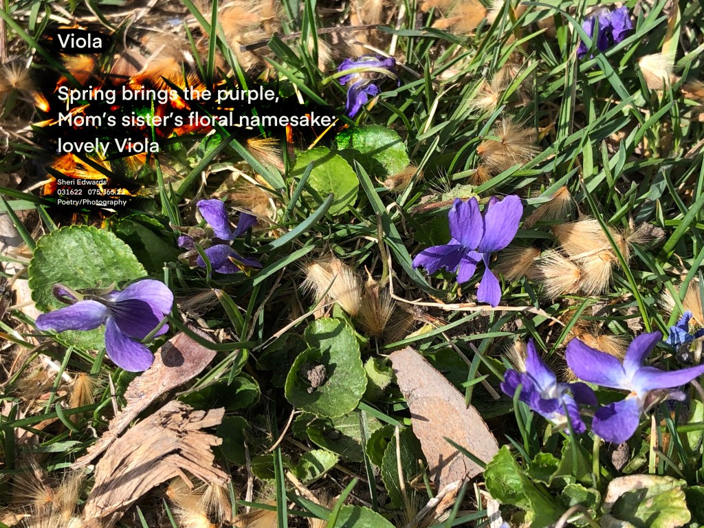 Every day, a photograph, a poem. Today, the lovely purple arrived, the ones that are the flower of my aunt, my mom’s sister, Viola. In recent years, learning the name of these flowers, I wondered if she was named for these flowers, but both my mom and aunt are gone now— as are all family members. I will never know, but I will think so, because she was as special to me as these first spring flowers.