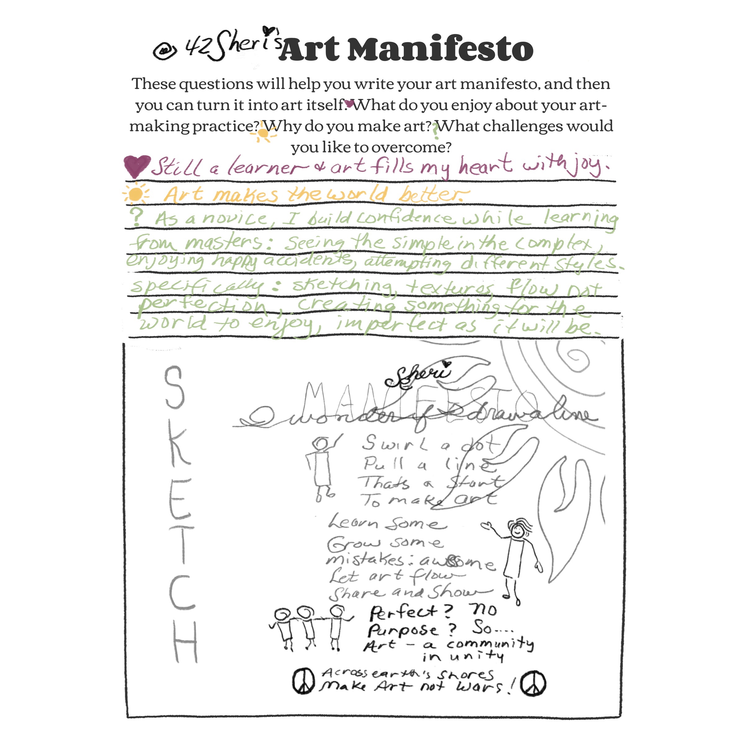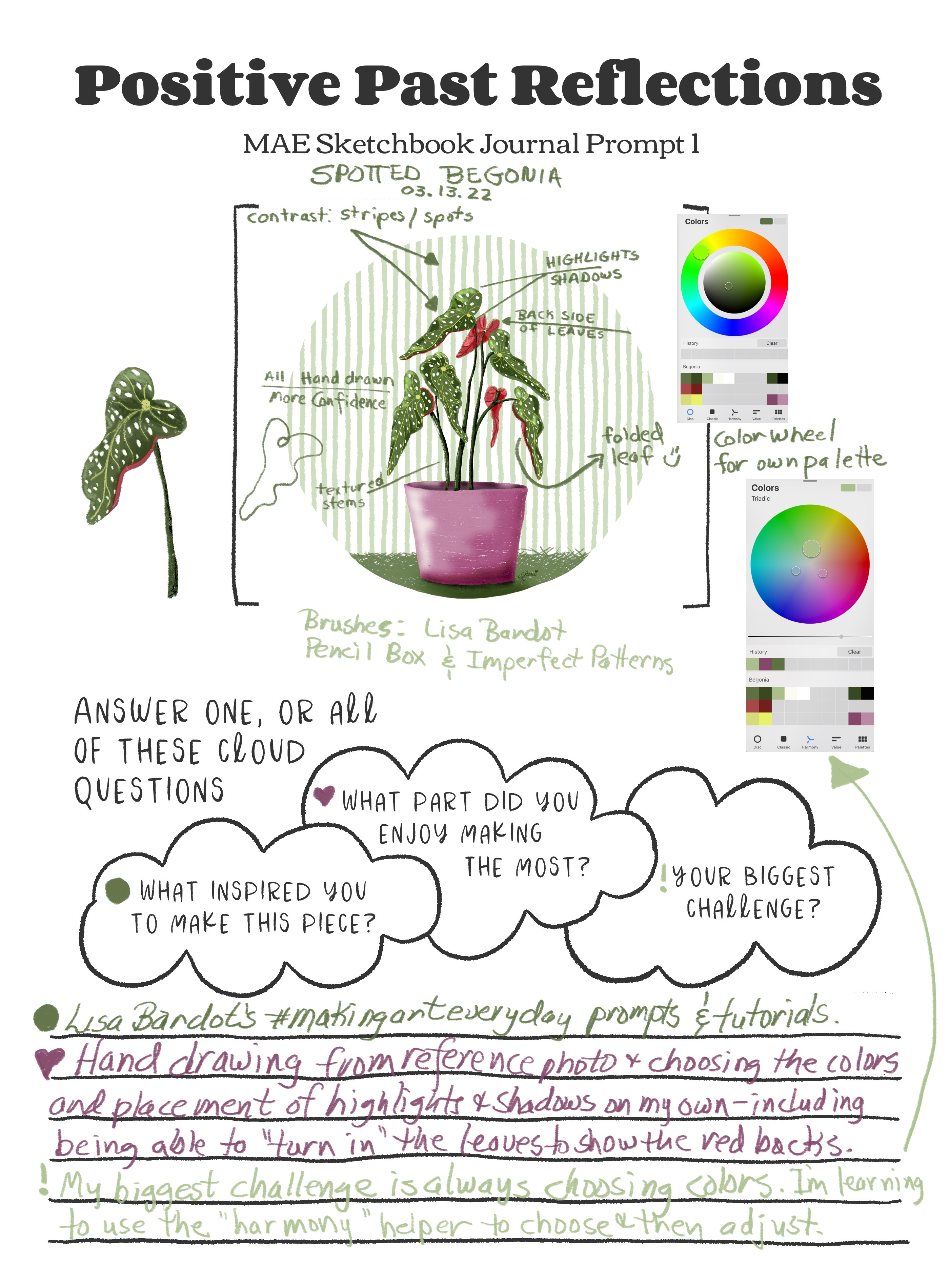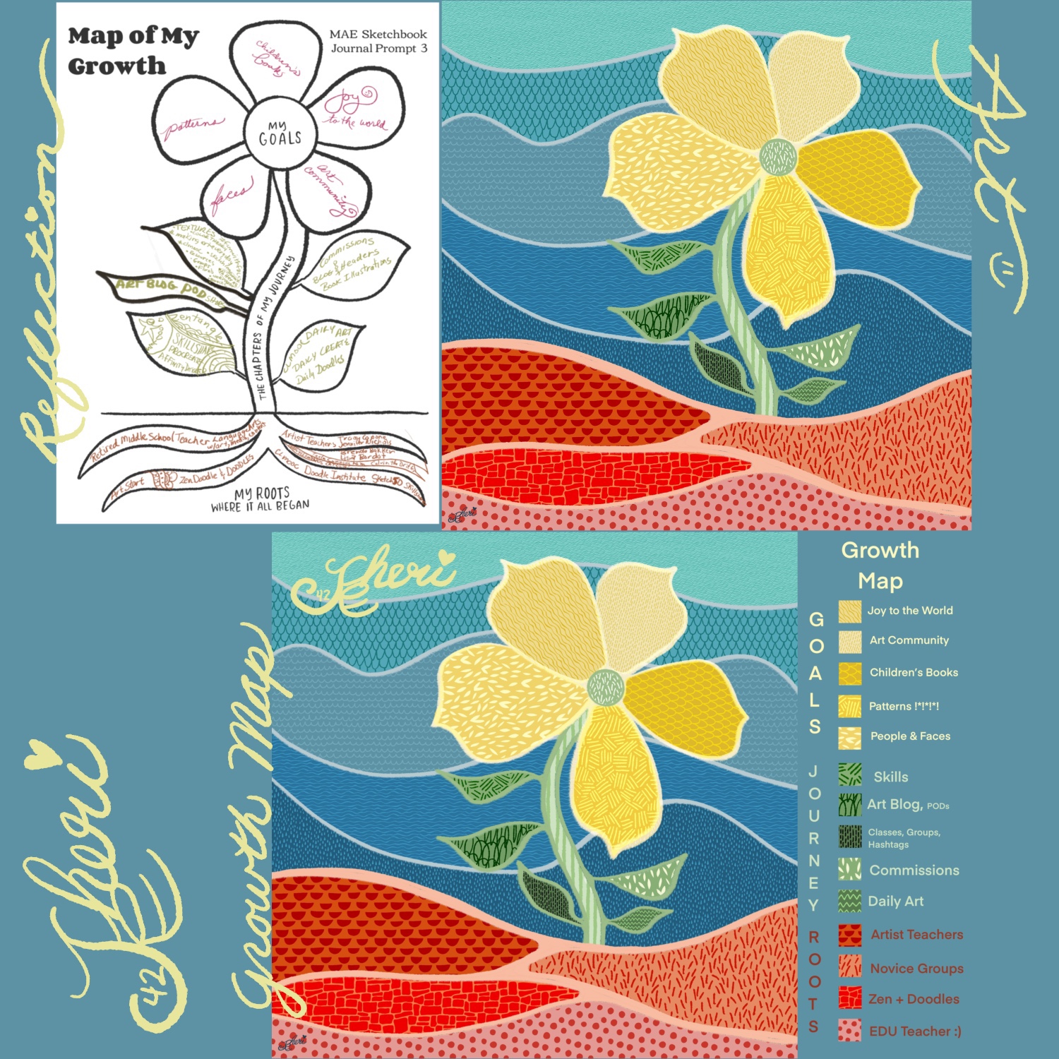 I’ve also completed tomorrow’s prompt, so today, I share my completed journal in this gallery— a reflection on my growth as an artist and my expectations to continue learning with my new artist friends and my old CLmooc friends. Thank you all for your inspiration.