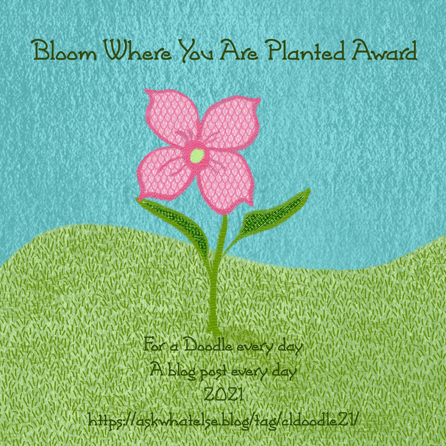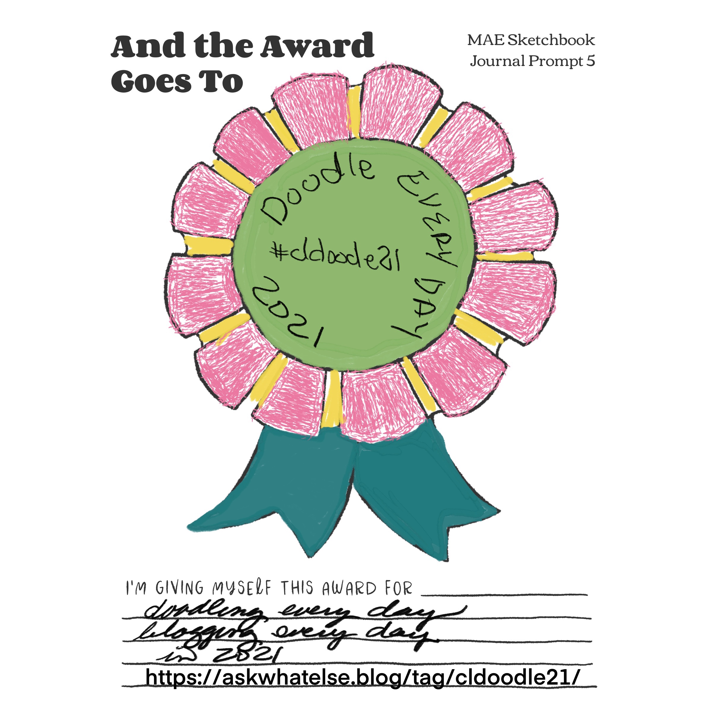 This week’s prompts from Lisa Bardot’s #makingarteveryday continues the theme of Grow, but focuses on a Sketchbook Journal of Reflection. Today’s prompt is an award— and I chose to award myself for the fact that every day in 2021, I doodled and blogged with my CLmooc friends, which you can find here #cldoodle21