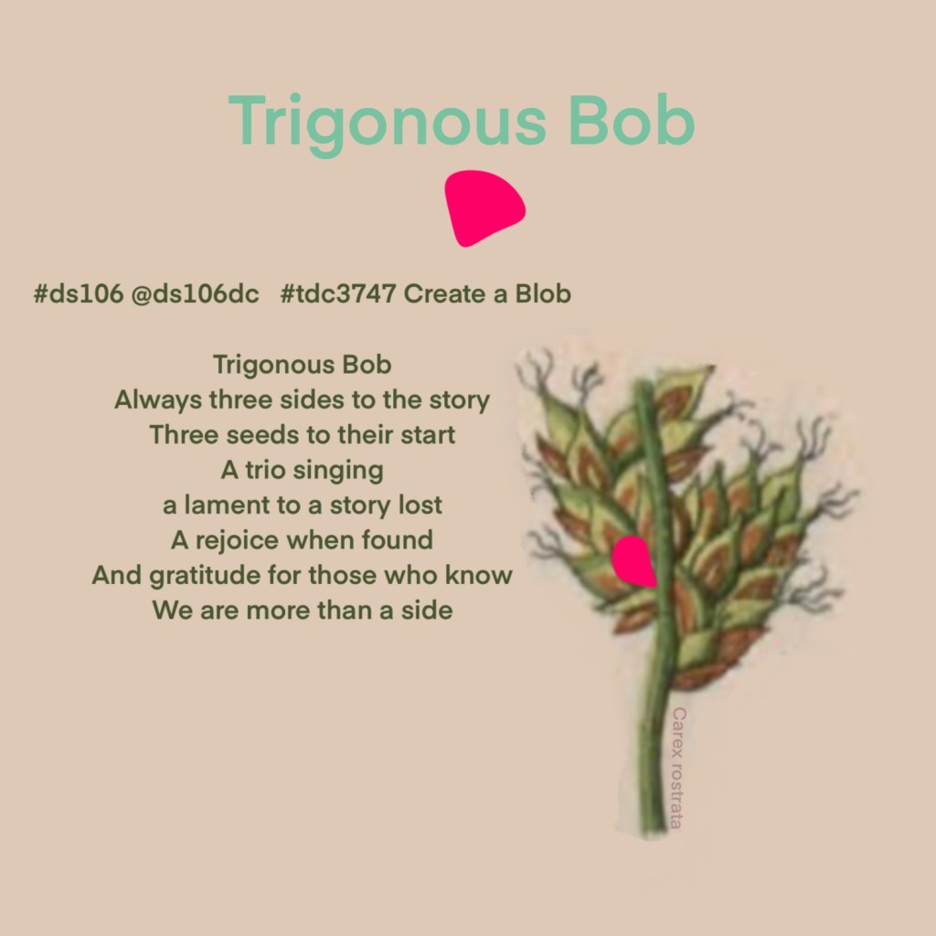 So, I found a plant with the “trigonous” seed, a sedge and considered the “3” sides of the seed — the sides to every story. We are so much more than “sides.”
