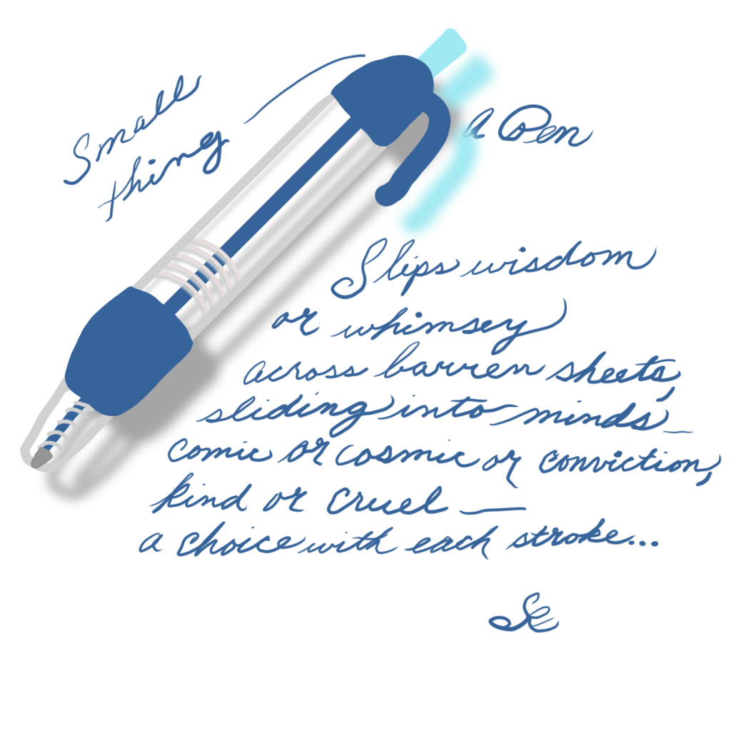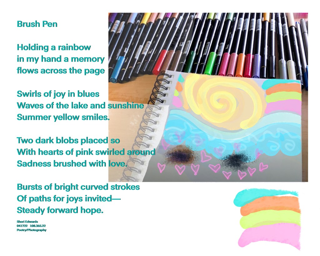 I wrote better poems back then. Today, I tried for a short poem, a small poem about my art pens– the brush pens. Instead, I wrote four haiku and then created the bit of life — the art that the poem and the pen painted.