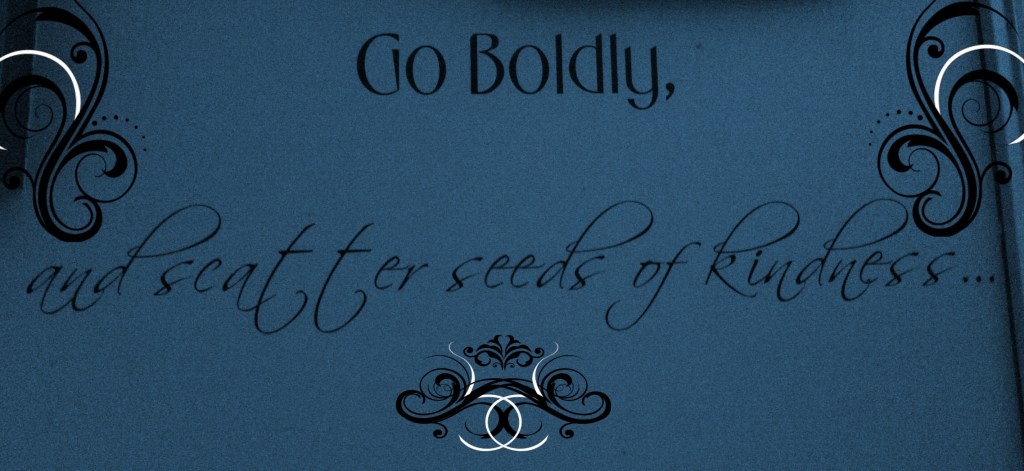 So when I retired, Dave, our custodian and my friend, asked his wife to reupholster one and embroider the words that adorned my outer classroom door, “Go boldly and scatter seeds of kindness.” I love it! Such a kind gift from a kind couple.