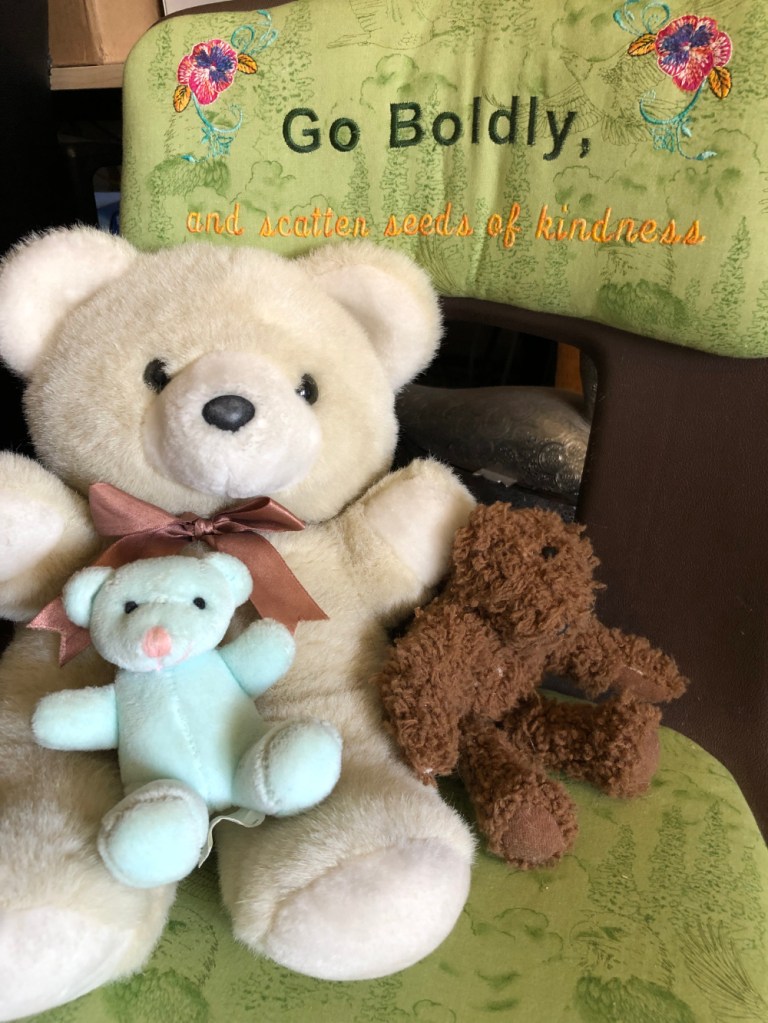 It’s always in the living room— so many memories of school days and the chats with Dave. It always holds a few bears — a welcome to any children that used to enter our house before COVID. The chair and the bear are waiting.