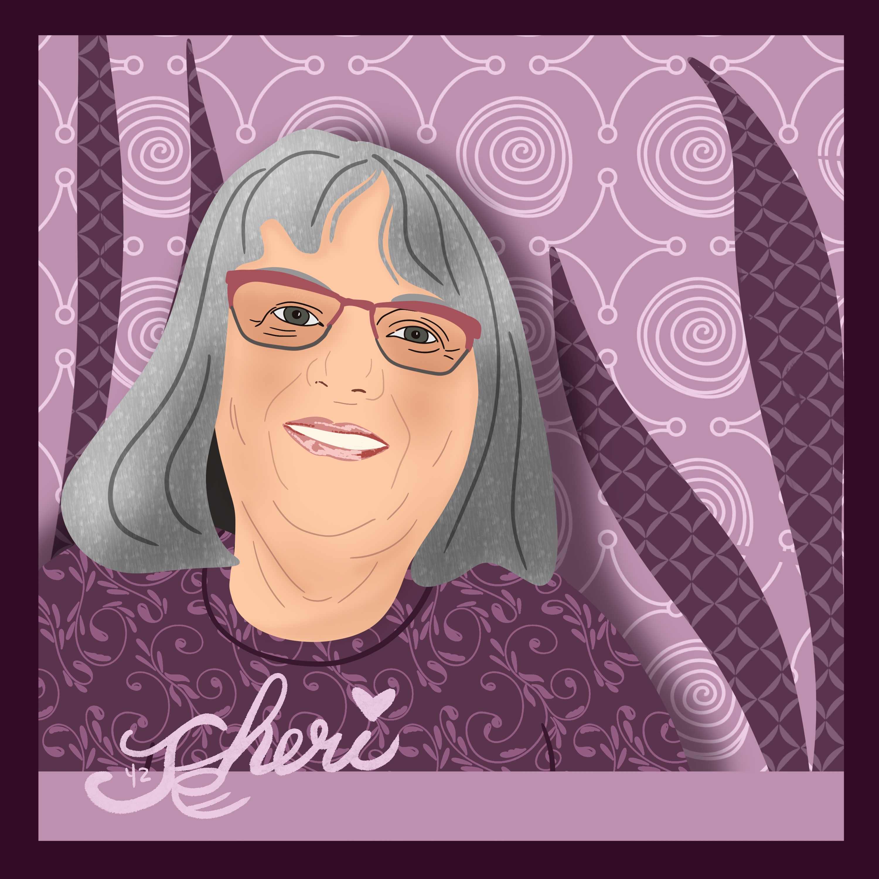 I’ve been creating my own brushes and today I decided to do a self-portrait using a few, especially the one made today in Jennifer’s Swirly Brush lesson.