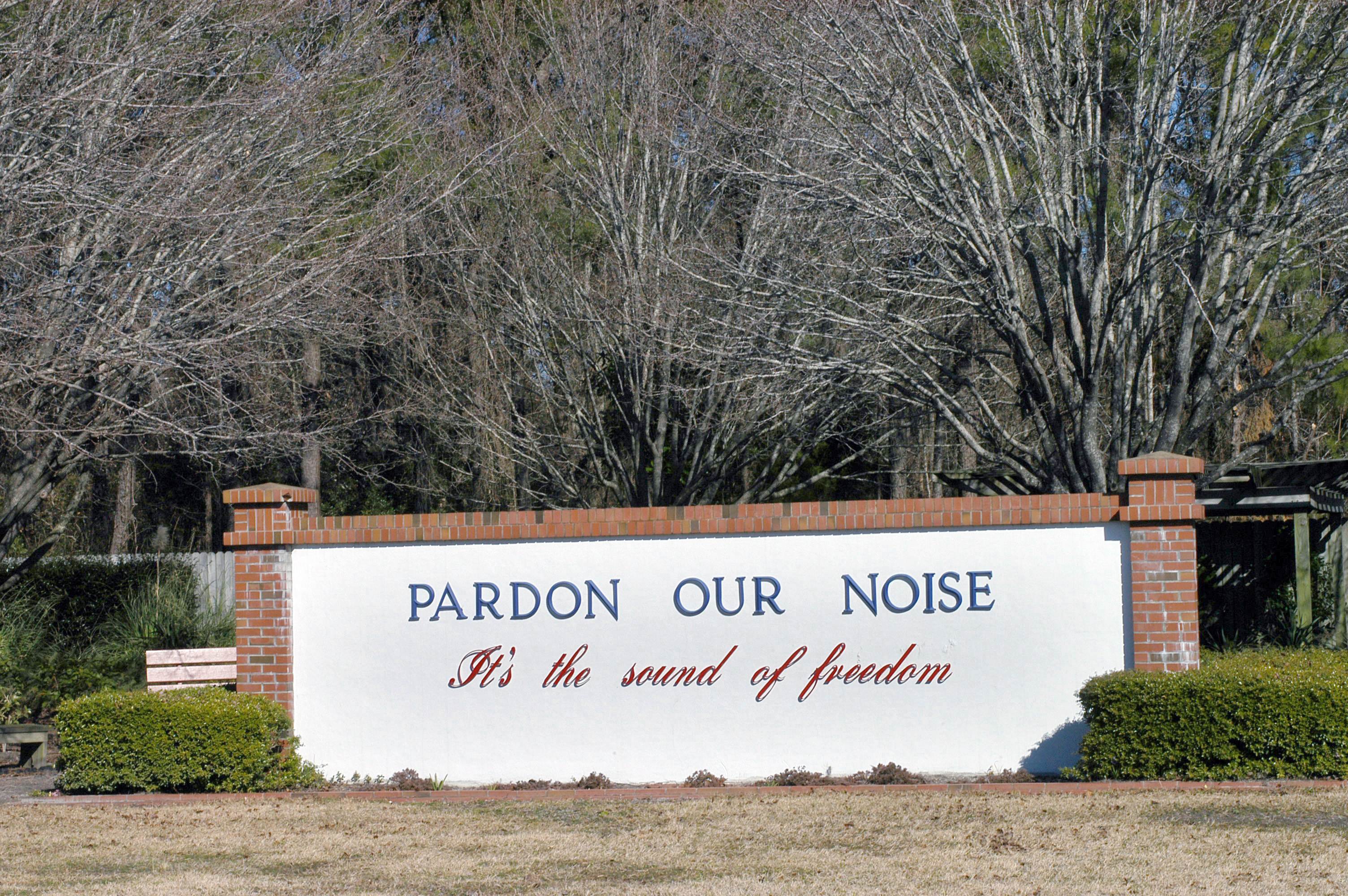 “PARDON OUR NOISE, It’s the sound of freedom” is on a sign that sits outside the main gate of US Marine Corps (USMC) Marine Corps Air Station (MCAS) Cherry Point, South Carolina (SC).