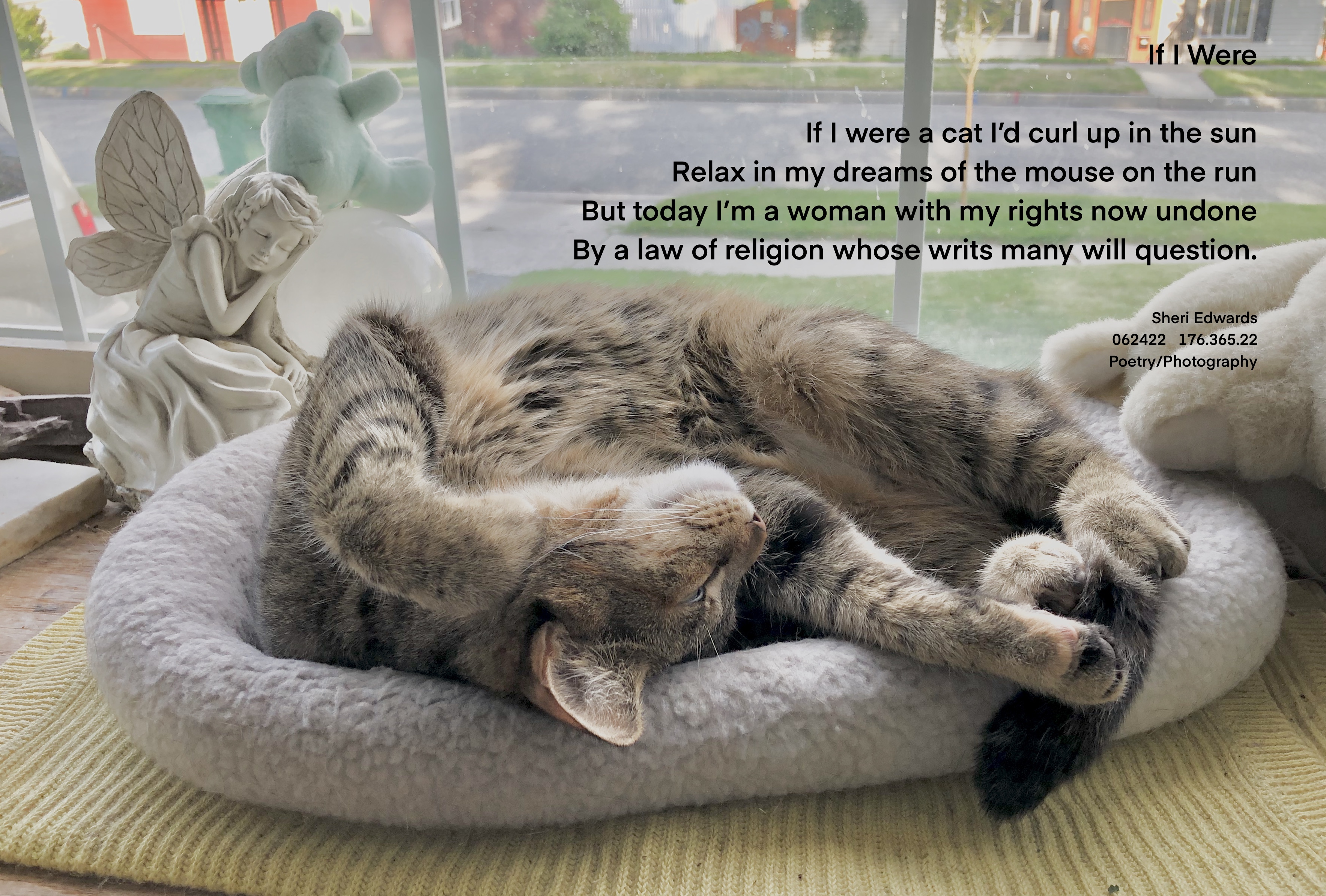 Every day, a photograph, a poem. Sometimes, when the cat is so relaxed, [which, for this wild cat is not very often], I breathe deeply in and out to capture that feeling that world is calm and safe for everyone to simply let go and relax.