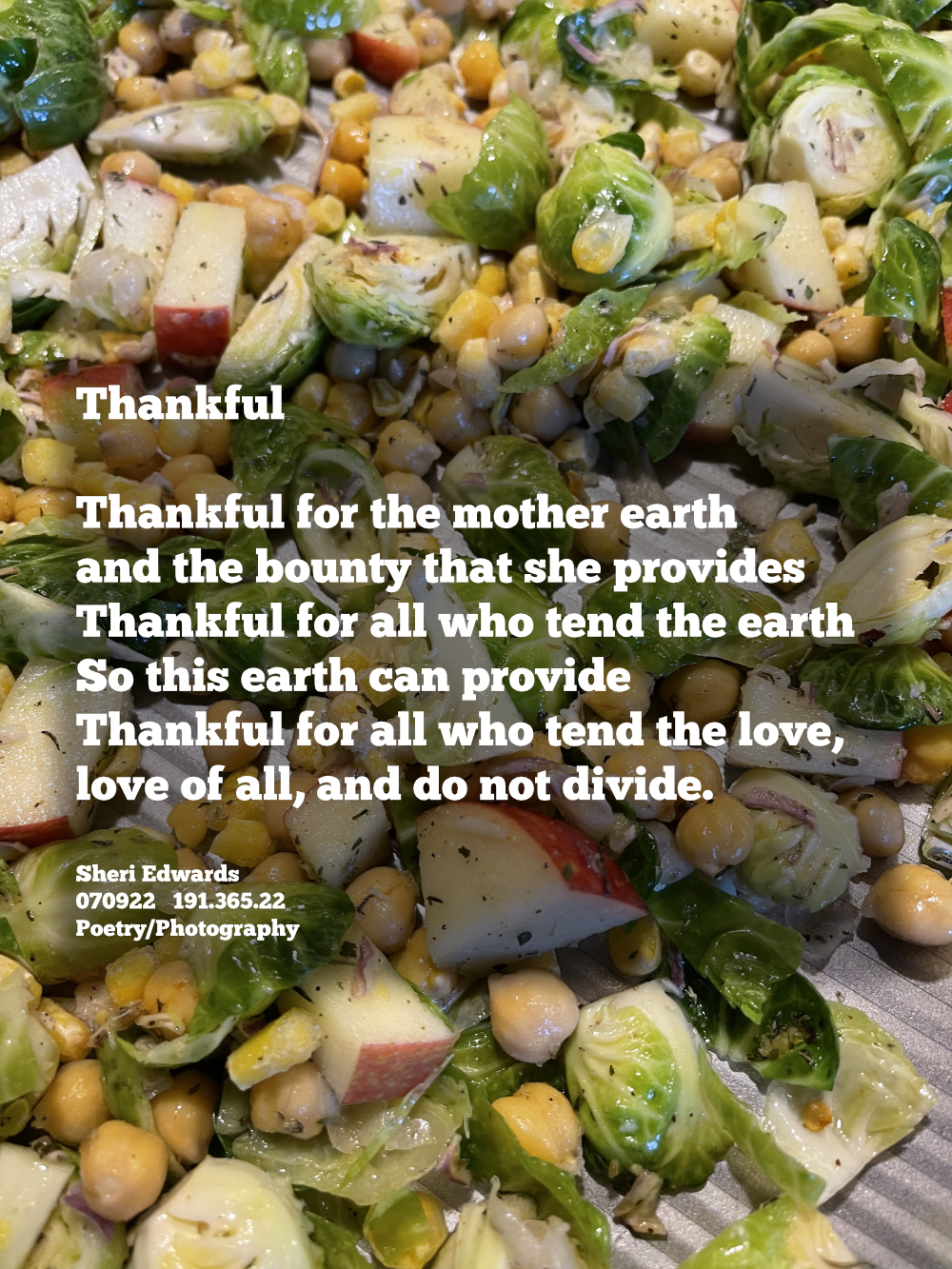 Every day, a photograph, a poem. When I eat, I give thanks to mother earth and to all those who who help feed the world. We are all in this together, and we must support each of us– that we all can live and let live.