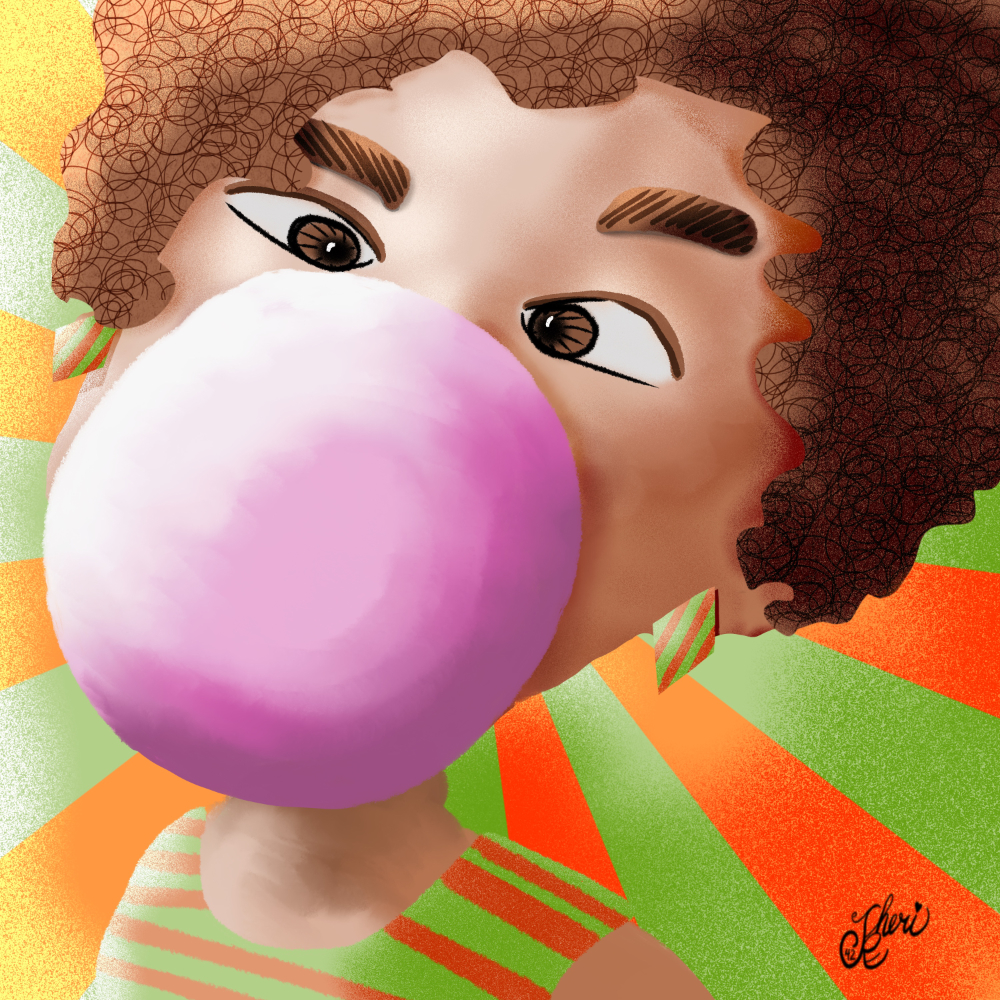 - #funwithfaces Wednesday retro, curly hair, bubble gum