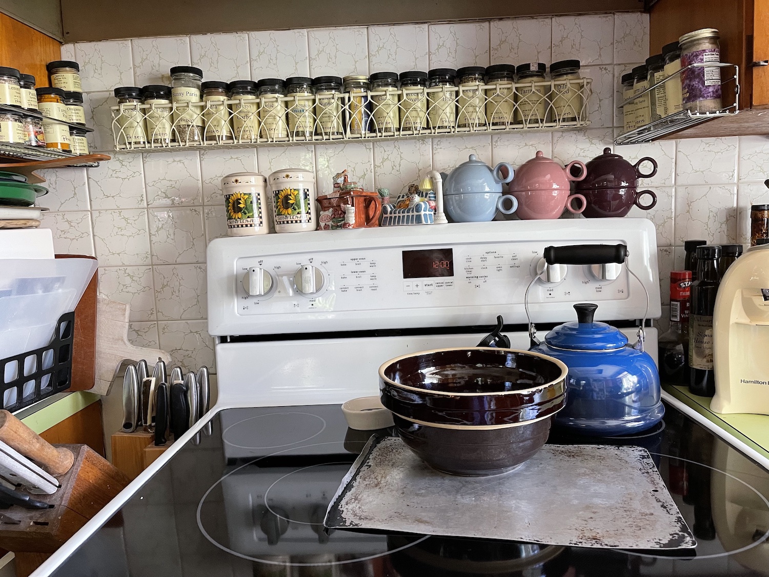 That’s my mom’s stove, It’s a gas stove and we were only allowed to use it after she checked the pilot lights because we were not allowed to light them ourselves, ever– until finally as a teenager mom taught me how so I could do some cooking when they were off fishing or camping. My mom was a worry-wart. I know why I am.