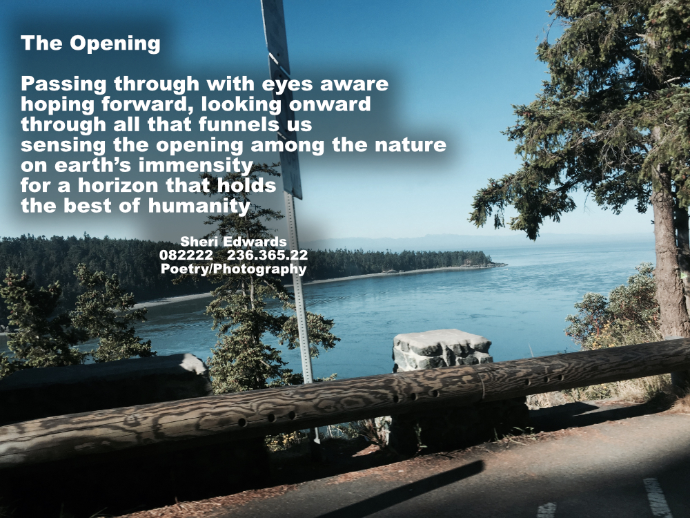 I remember this day driving along on the highway, of this picture with trees blocking the view of the ocean and it’s expanse– of Puget Sound to the distant Olympic Peninsula– aware of what’s there– of what’s possible but not able to see it until that opening appeared and I could snap that shot. I saw an opening. I’m not seeing an opening. I see only the closing doors of a now failed democracy– failed from its own citizens gone autocratic to create a government of nepotism, favoritism, bribery, corruption.