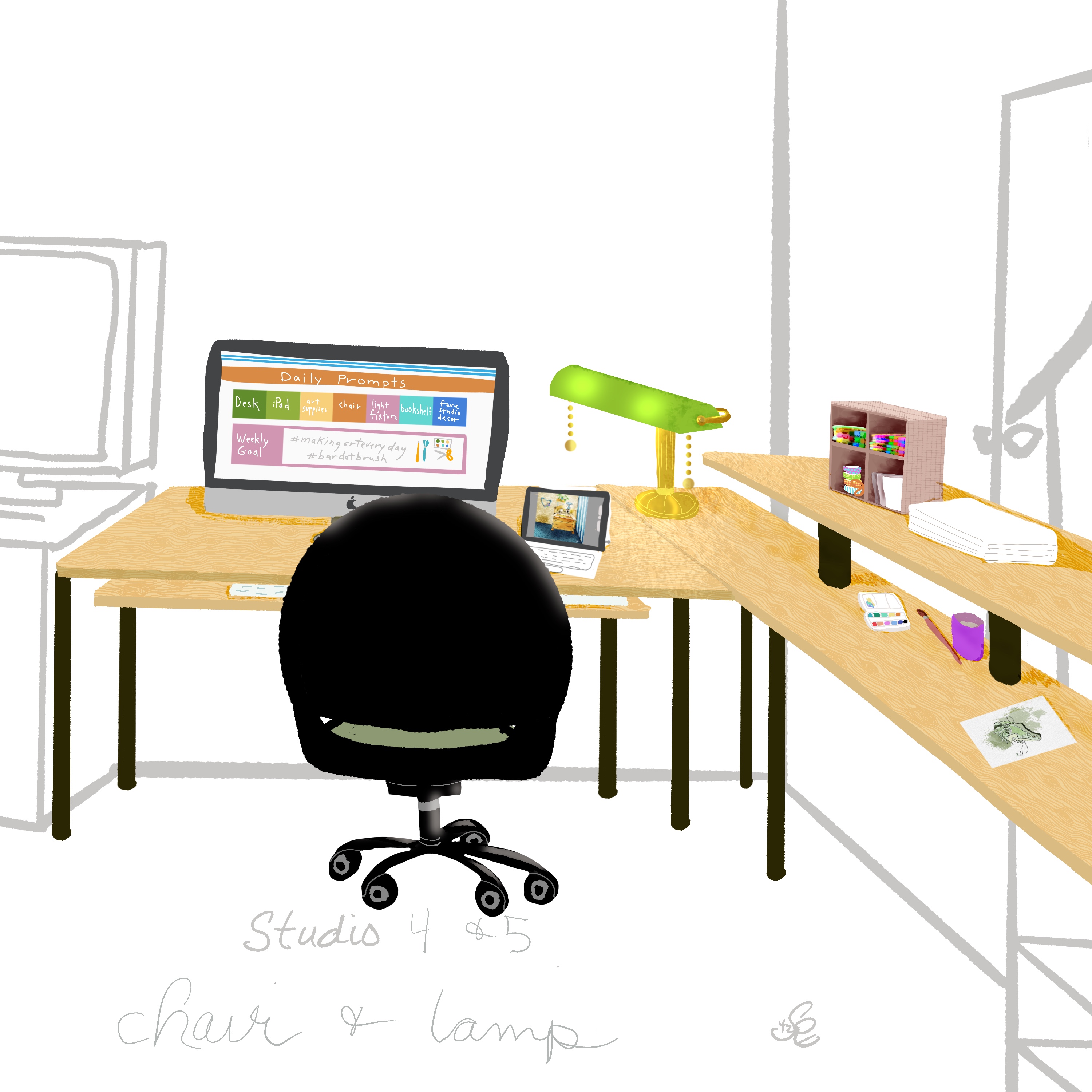 My CLmooc friends doodle every day. Today I added a chair and lamp for #makingarteveryday prompts Week 34: Studio.