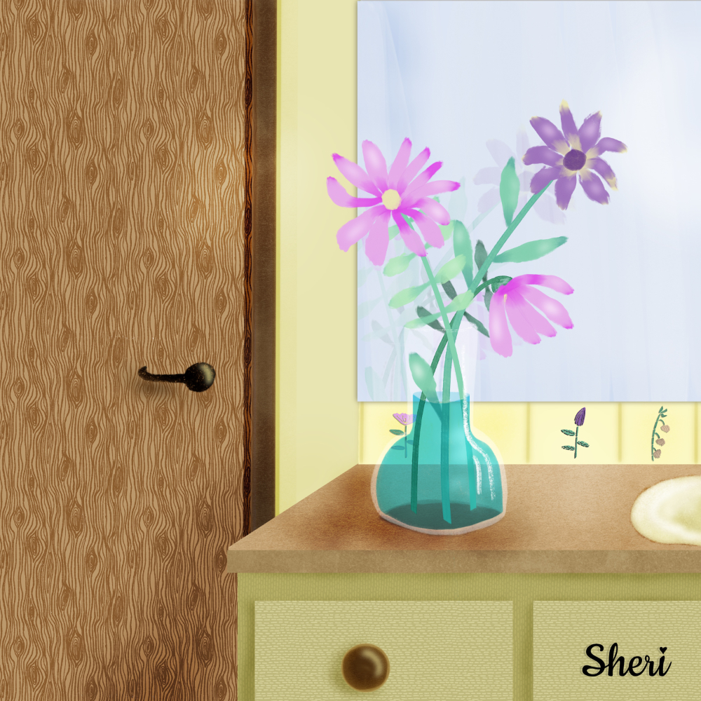 And for September #makingarteveryday 35 #bardotbrush for Thursday is Vanity / Sink as the prompt so I practiced more of the transparent vase and bouquet sitting beside the sink.
