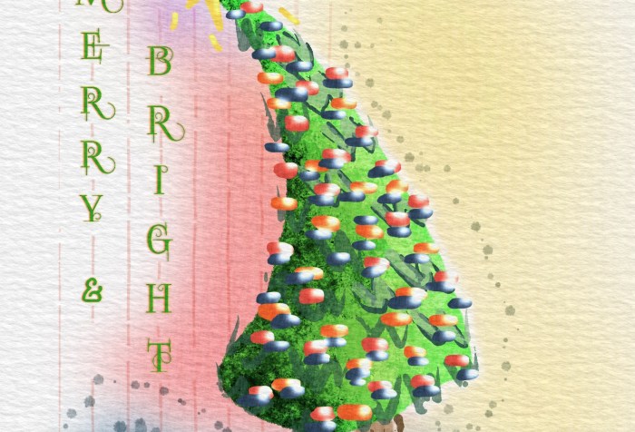 Daily Create and poetry of crab apple tree;December Doodle vintage midcentury flat new year greeting