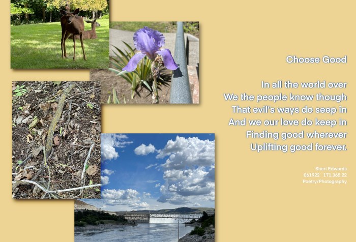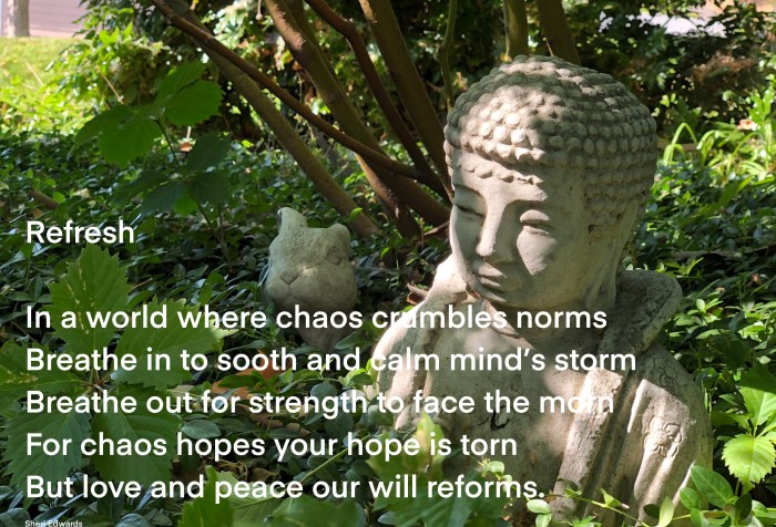sounds of hope: a quiet neighborhood with children laughing and playing, neighbors greeting one another, a conversation of differences working to solve a problem together, and a gentle breeze in the trees where chickadees sing
