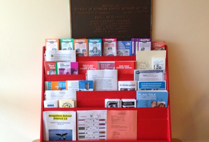Parent Information is so important. We’ve added this station to our foyer and plan to enlarge it. Schedules, handbooks, health brochures, testing information all have a place for easy discovery. … Continue Reading #sol15 Parent Information